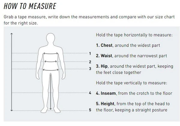 | Chest | 83 - 86 cm | 87 - 92 cm | 93 - 100 cm | 101 - 108 cm | 109 - 118 cm | 119 - 130 cm | 131 - 142 cm |